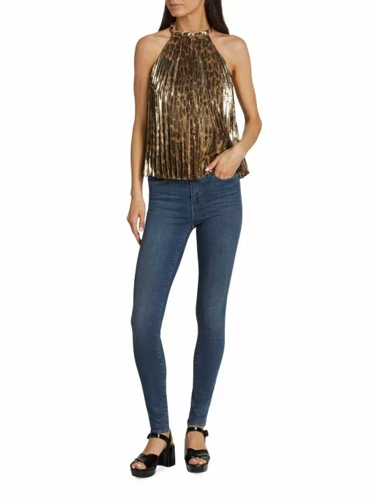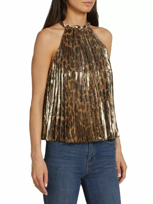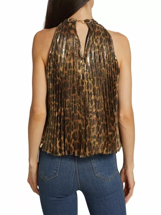 ONLY AT SAKS. Crafted of silky satin, the Alycia top by Alice + Olivia is finished with a bold leopard print.