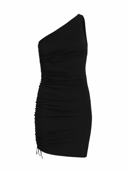 The Binnie minidress from Alice + Olivia is a ruched bodycon style with a one-shoulder neckline.