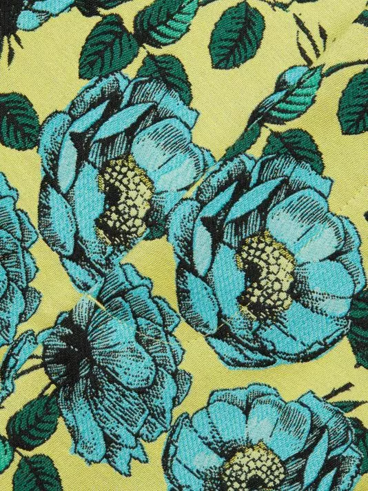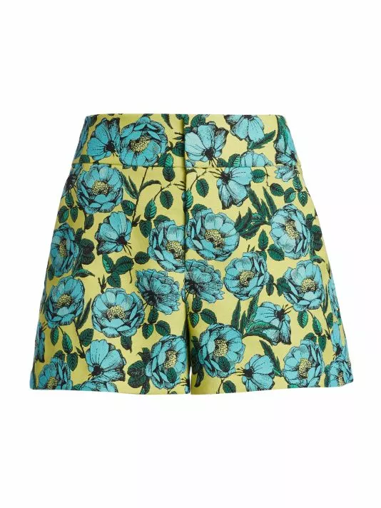 Cut from a vibrant floral cady for supple structure, these high-waisted shorts are finished with side and back pockets.