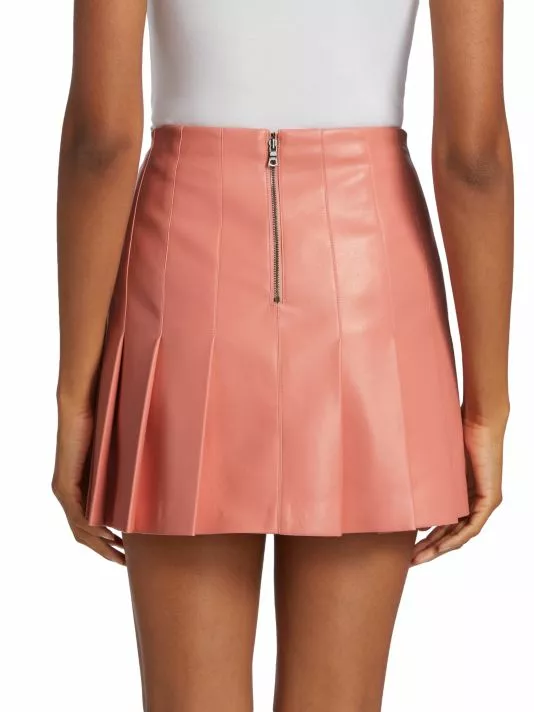 The Carter pleated miniskirt from Alice + Olivia features a high-rise, A-line silhouette. Vegan leather and an exposed back zip closure add an edge to this classic style.