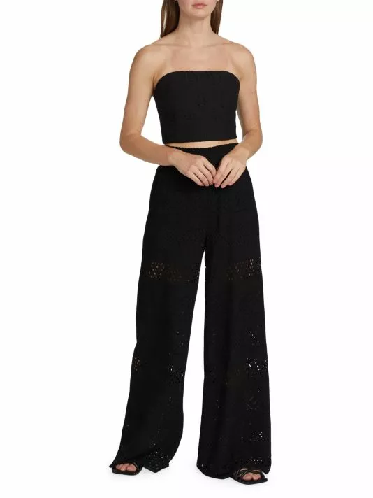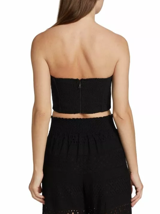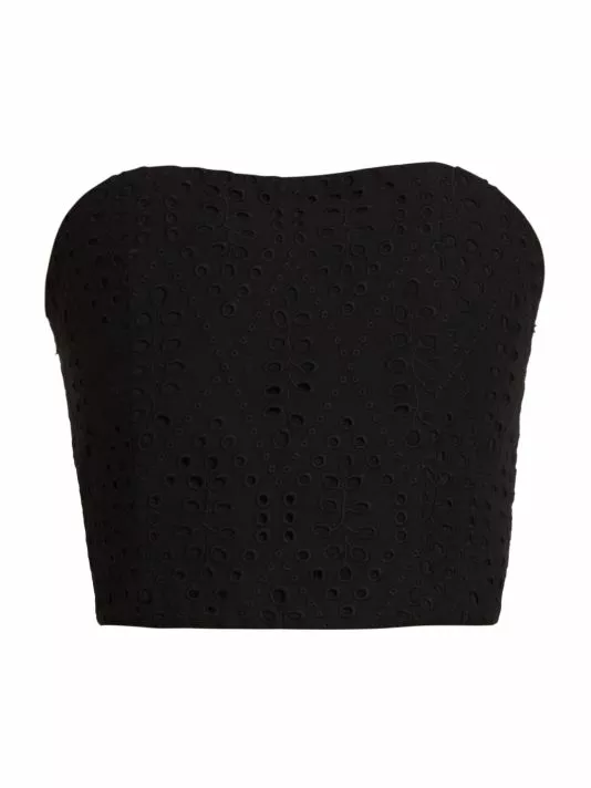 Featuring eyelet embroidery, Alice + Olivia’s Ceresi cotton tube top features a strapless neck, smocked back, and cropped hem.