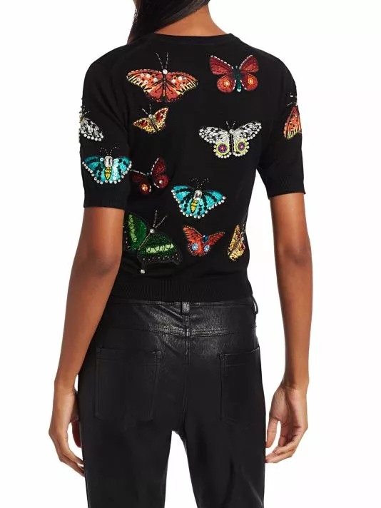 ONLY AT SAKS.COM. The classically elegant crewneck pullover is given a whimsical update with colorful butterfly embroidery.
