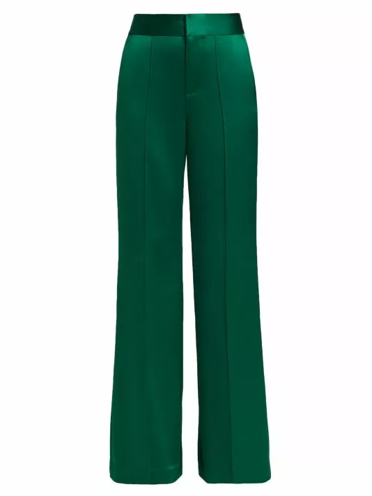 A front pintuck detail elongates the silhouette of these straight-leg high-waist trousers.
