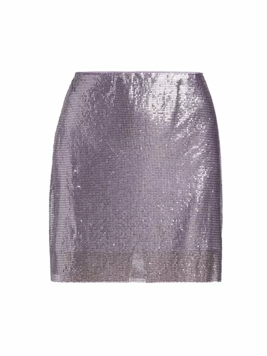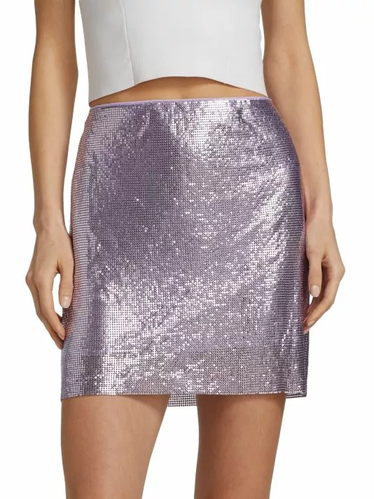 Designed in a pencil silhouette, the Elana miniskirt is crafted of shimmering metallic fabrication.