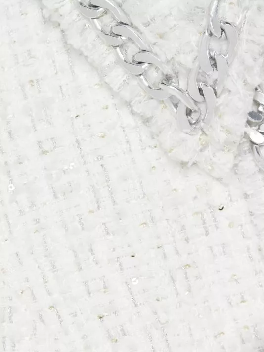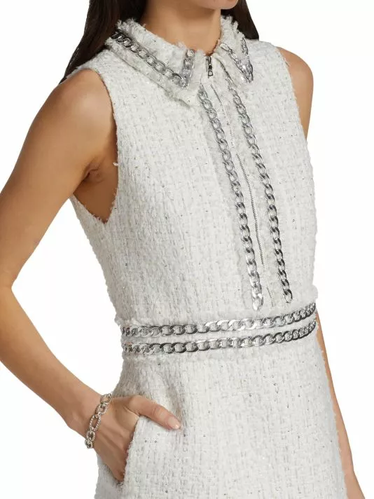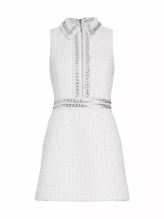 Designed for Alice + Olivia, the Ellis shirtdress is designed in a sleeveless style with metallic trim at the bodice.