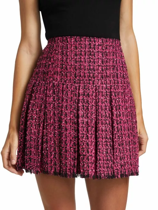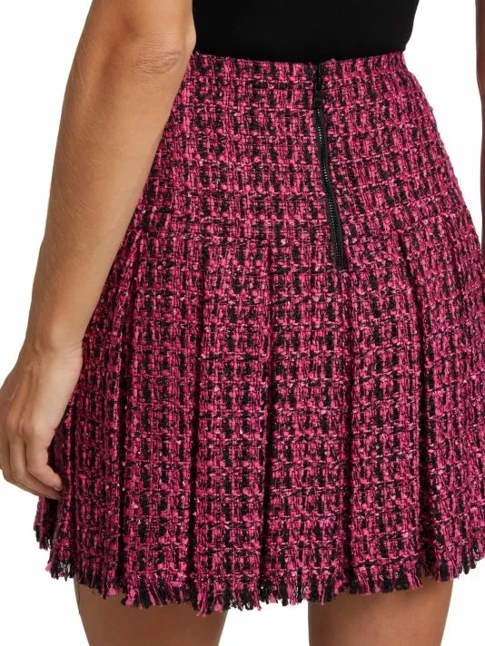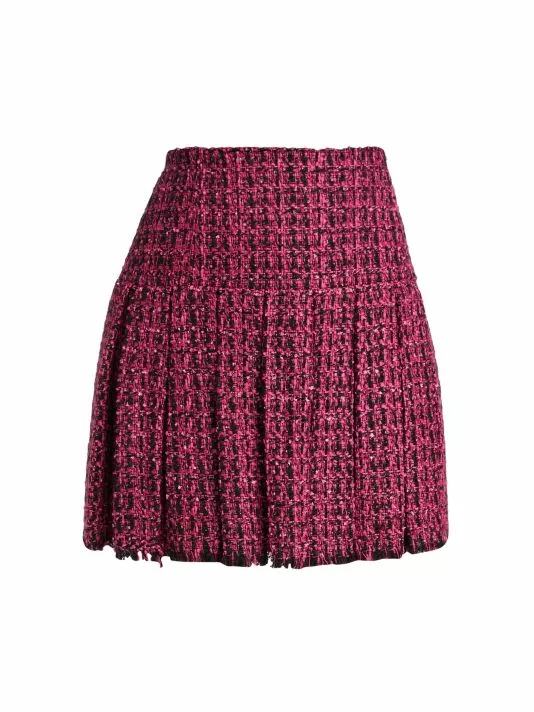Box pleats shape the silhouette of this mini skirt, crafted in a textured two-tone tweed fabrication.