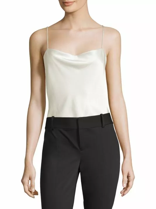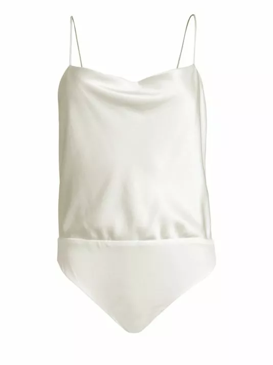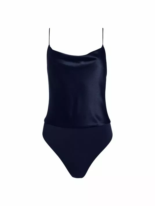 A satin finish lends sophistication to this slinky bodysuit.