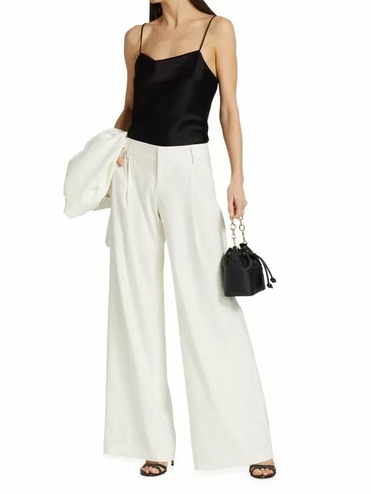 Crafted of lustrous satin, this tank top is defined by a draped cowl neckline.