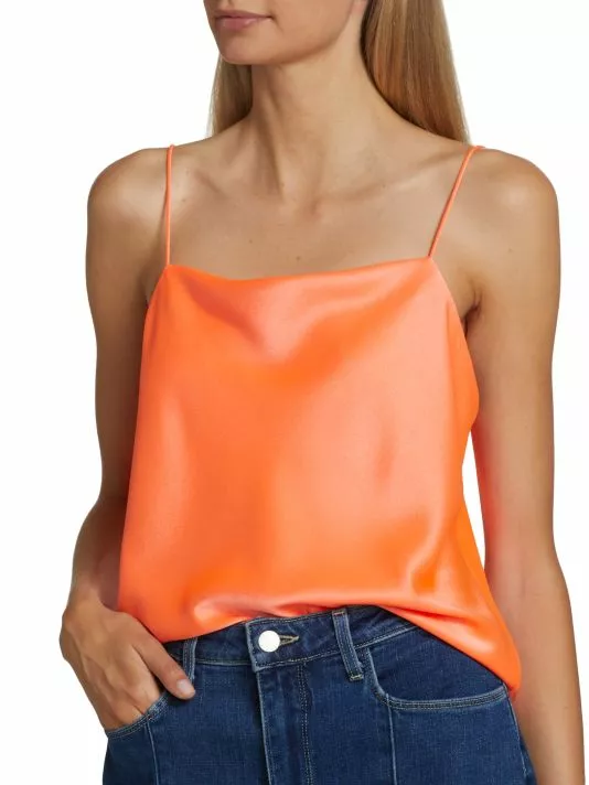 The Harmon tank top from Alice + Olivia is crafted of smooth satin in a drapey silhouette.