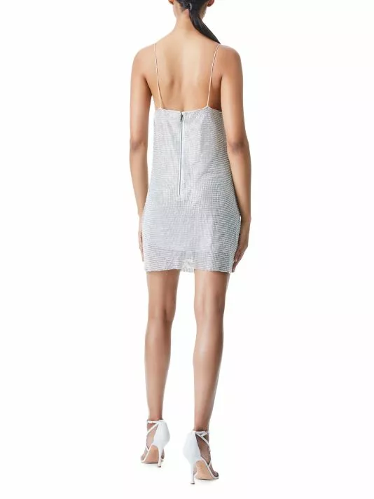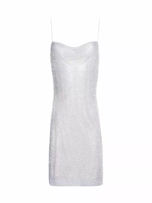 Inspired by the `90s, this mini dress is crafted from crystal chainmail in a barely-there slip dress shape.