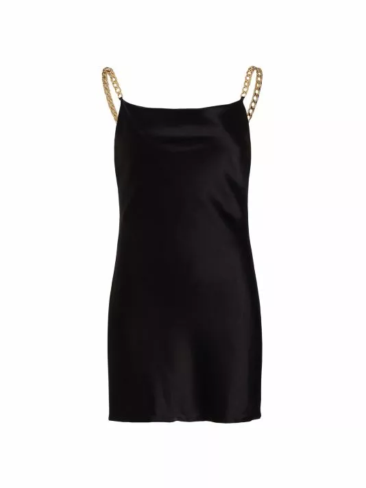 This minidress is detailed with golden chain straps.