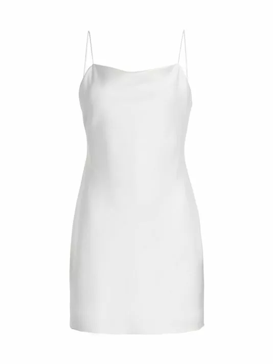 Designed with a `90s-inspired silhouette, this satin mini dress has a subtle cowl neckline and an easy fit.