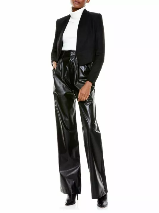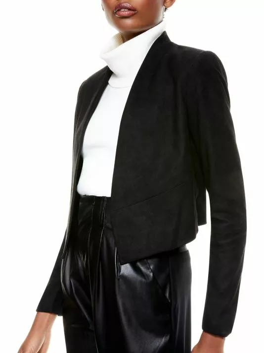 This cropped jacket is elevated with a suede finish.