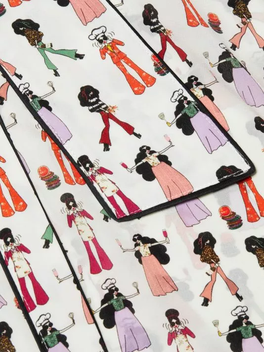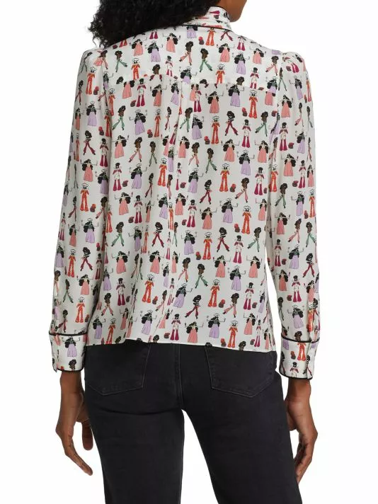 The Jeannie blouse from Alice + Oliva is crafted of pure silk in a playful chef print. A tieneck and contrast piping finish this polished style.
