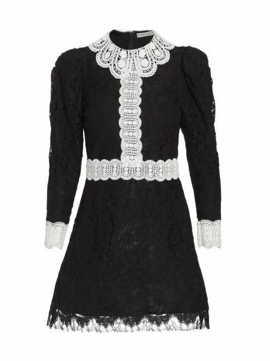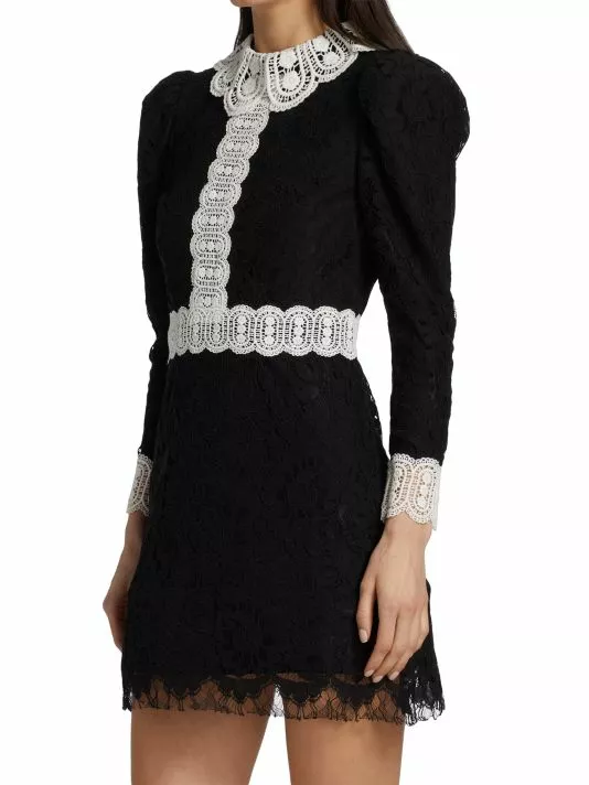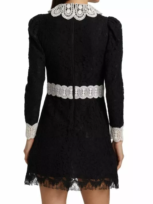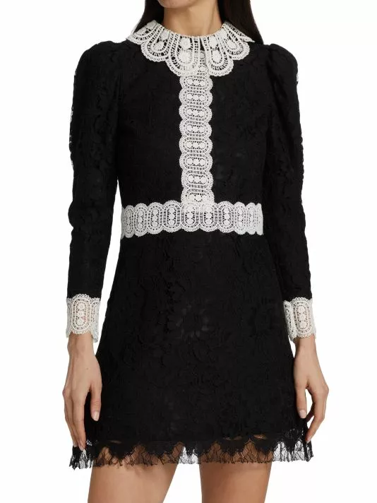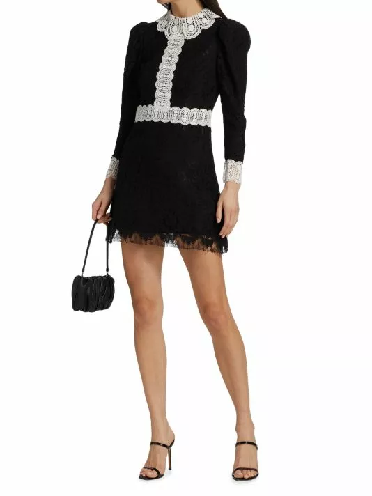 Cut in an A-line silhouette, this floral lace minidress is complete with contrast crochet detailing.