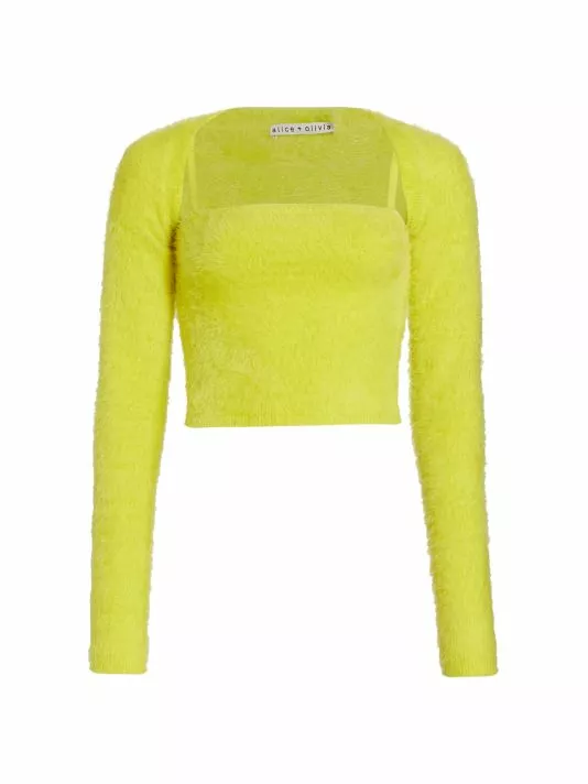 The Luetta crop top by Alice + Olivia is designed with an attached long-sleeve cardigan.