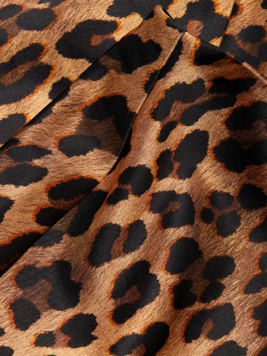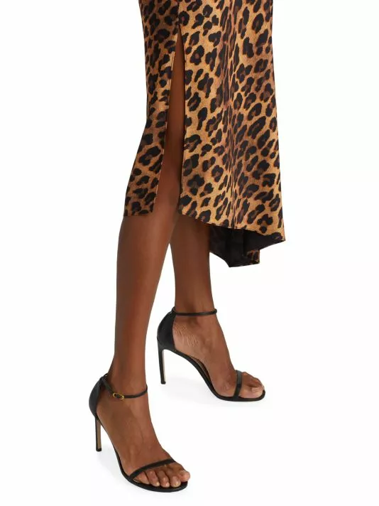 Alice + Olivia’s Maeve slip skirt features a high-rise waist and an asymmetric hem. A classic cheetah print finishes this midi-length style.