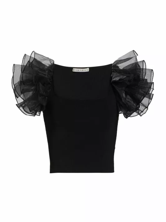The Merida crop top from Alice + Olivia is finished with flared ruffle sleeves.