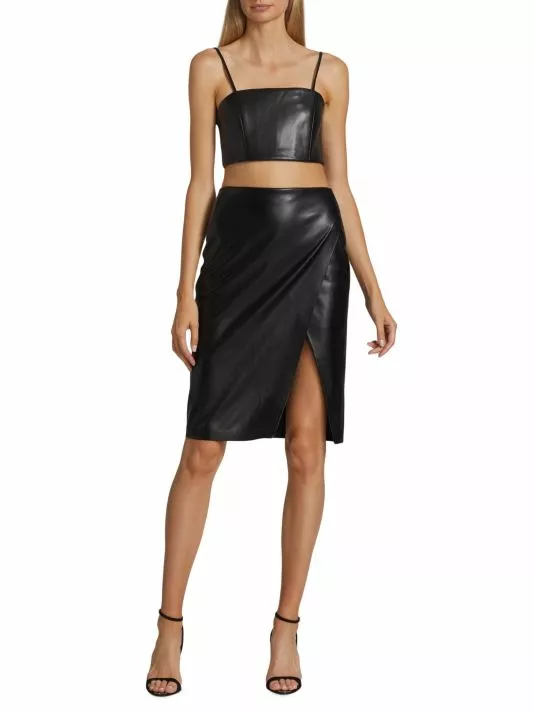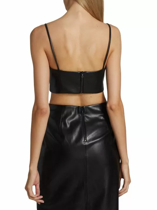 Crafted of smooth vegan leather, the Pearle crop top by Alice + Olivia is finished in a minimalist strappy style.