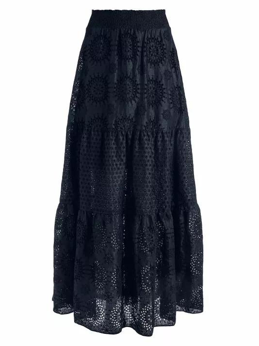 Crafted of a cotton-linen blend, the Reise maxi skirt by Alice + Olivia is detailed with stunning eyelet embroidery.