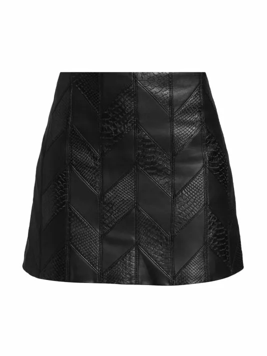 Crafted of luxe lamb leather, Alive + Olivia’s Riley miniskirt boasts textured chevron and crocodile-embossed patterning.