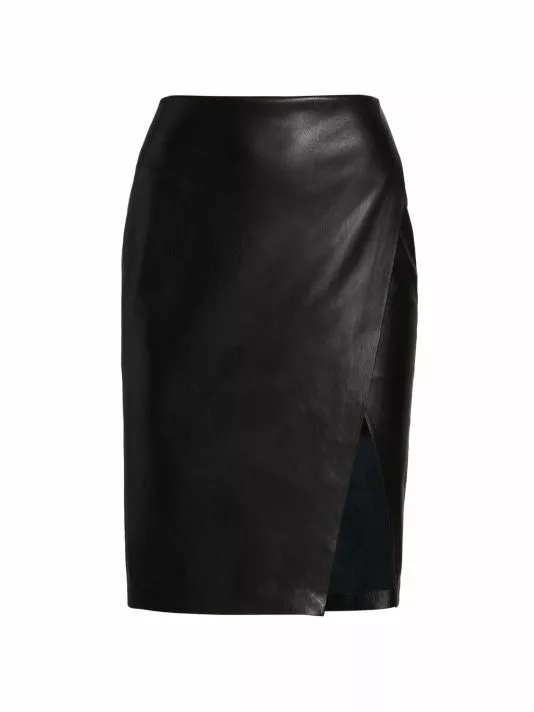 Crafted of smooth faux leather, the Siobhan midi-skirt by Alice + Olivia are designed in a fitted pencil silhouette.