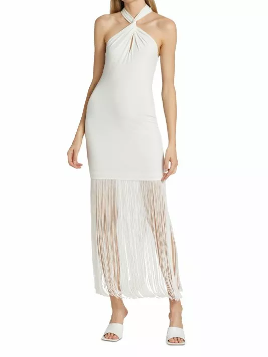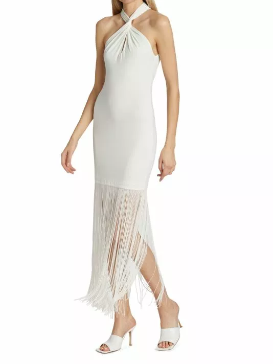Led by Creative Director Stacey Bendet, Alice + Olivia offers boldly designed womenswear for everyday dressing. The Steph midi-dress is detailed with a fringed skirt.