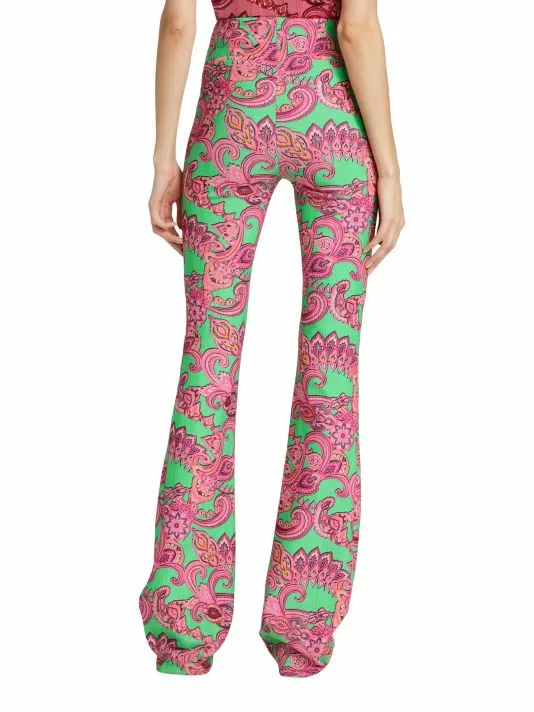 Vibrant paisley print covers these stretch boot-cut trousers, designed with a flattering high-waist silhouette.