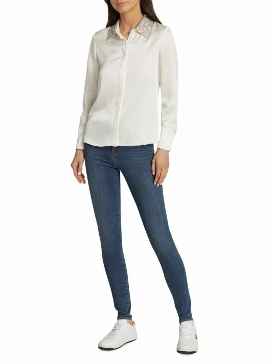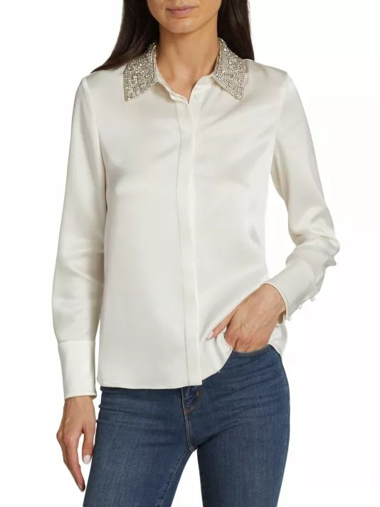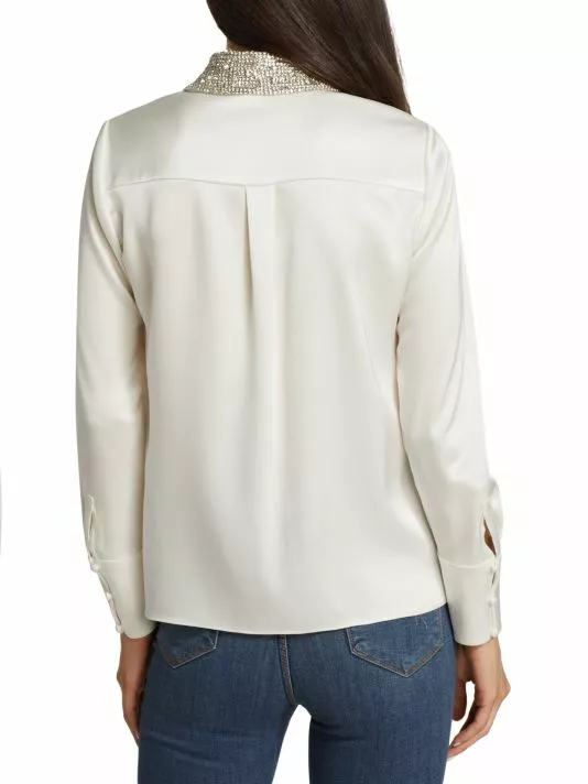 Crafted of satin, the Willa shirt by Alice + Olivia is designed in a classic, slim fit silhouette.